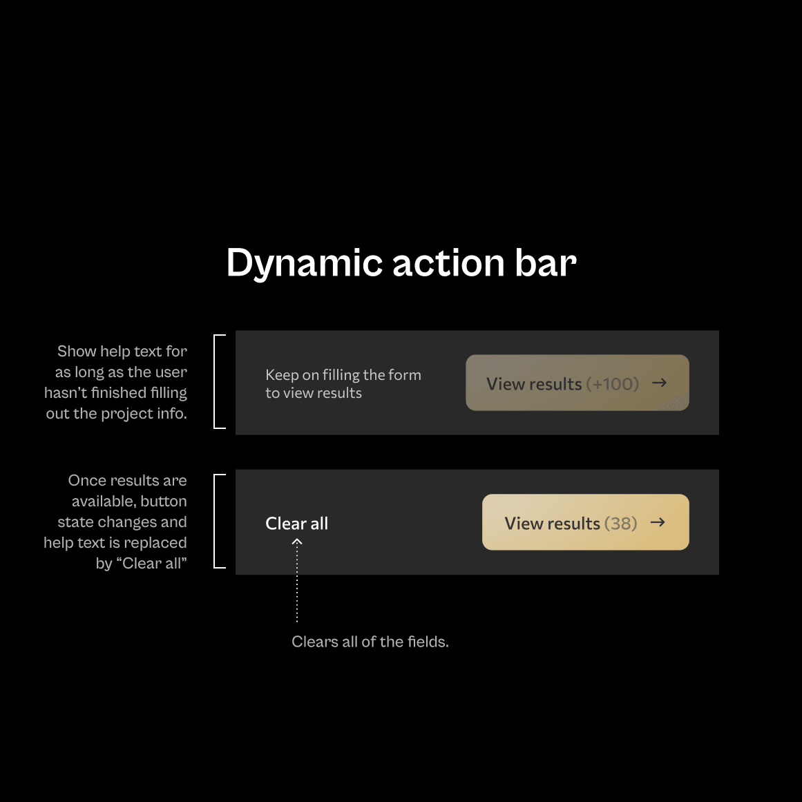 I separated search into a dedicated flow with a full-screen modal. While this improved focus, user testing revealed new issues—editing criteria felt buried, and search didn't feel central enough to the experience.